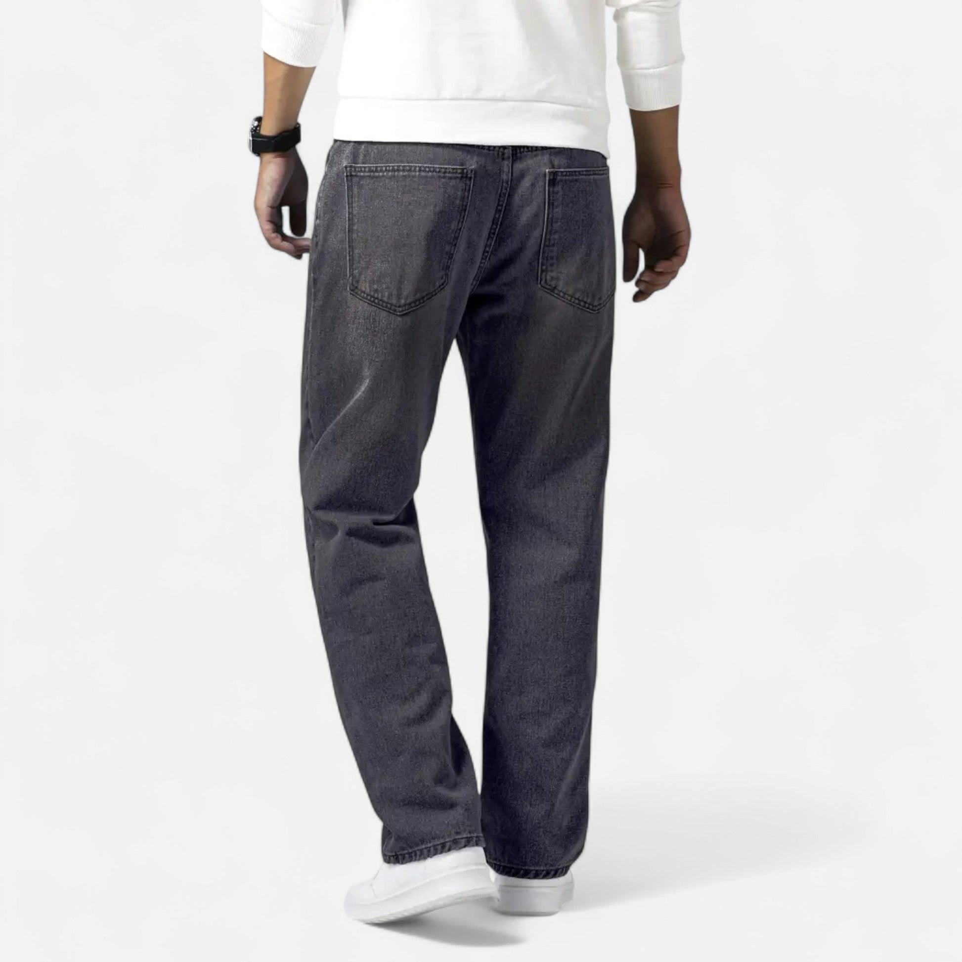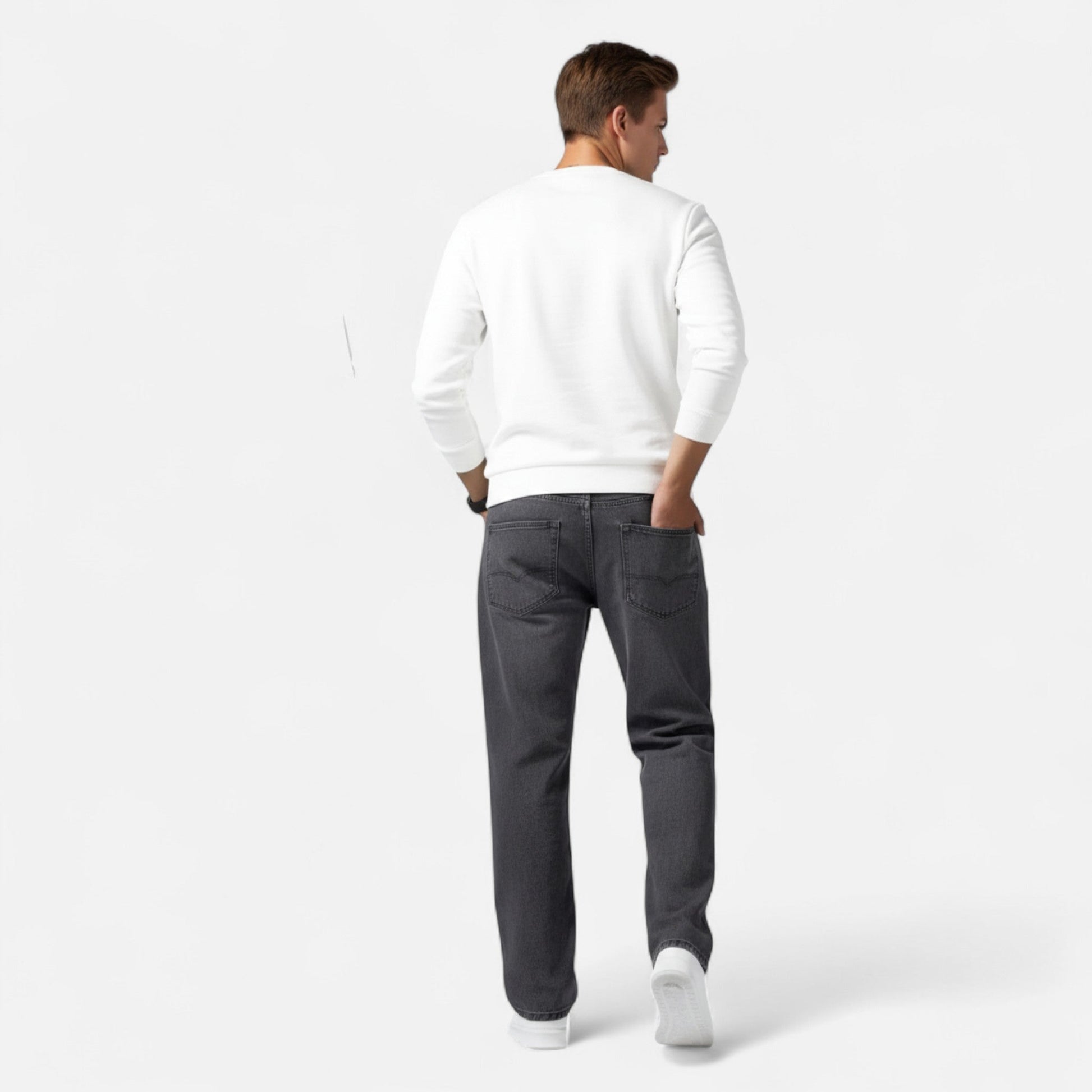 Auvier introduces jeans designed to embody effortless sophistication with casual ease. Cut in a loose, straight-leg silhouette and finished in a washed solid colour, these denim trousers provide understated style that pairs seamlessly with both knitwear and tailored separates. A modern essential rooted in classic heritage.