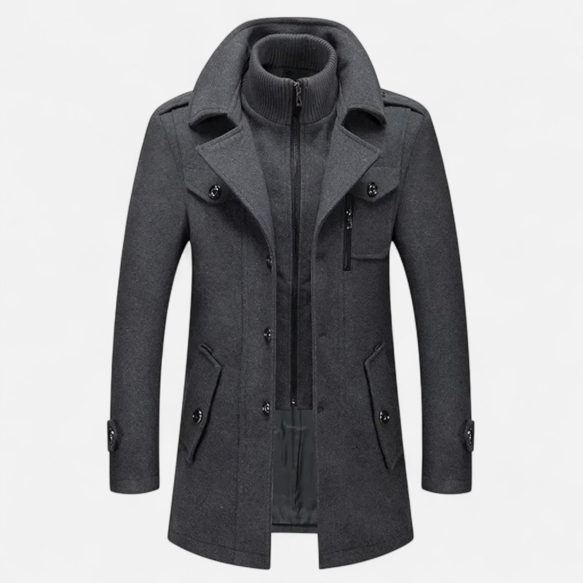 Auvier presents a long coat that blends tradition with modern refinement. The double-collar detail and elegant zip fastening create a silhouette that exudes authority while remaining effortlessly wearable. Designed for the gentleman who values sophistication in every season, this coat becomes a statement of confidence with every step.