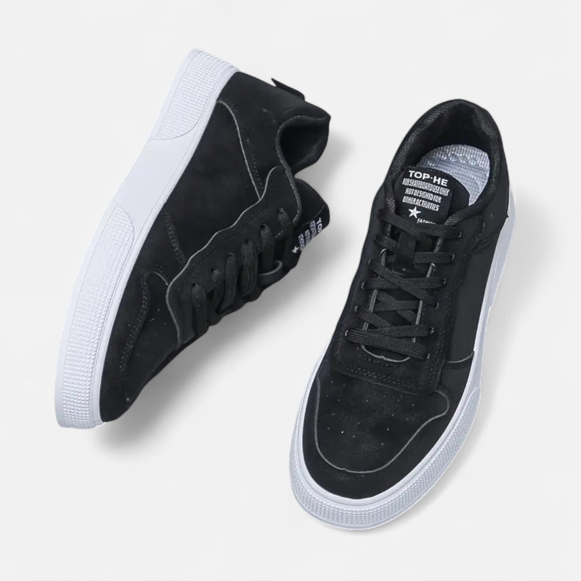 Auvier introduces casual sneakers designed to deliver both comfort and refined ease. Crafted in olive green with a clean white sole, these low-top lace-up shoes bring a modern touch to classic skate-inspired style. Perfect for casual days, they add a polished finish to everyday outfits.