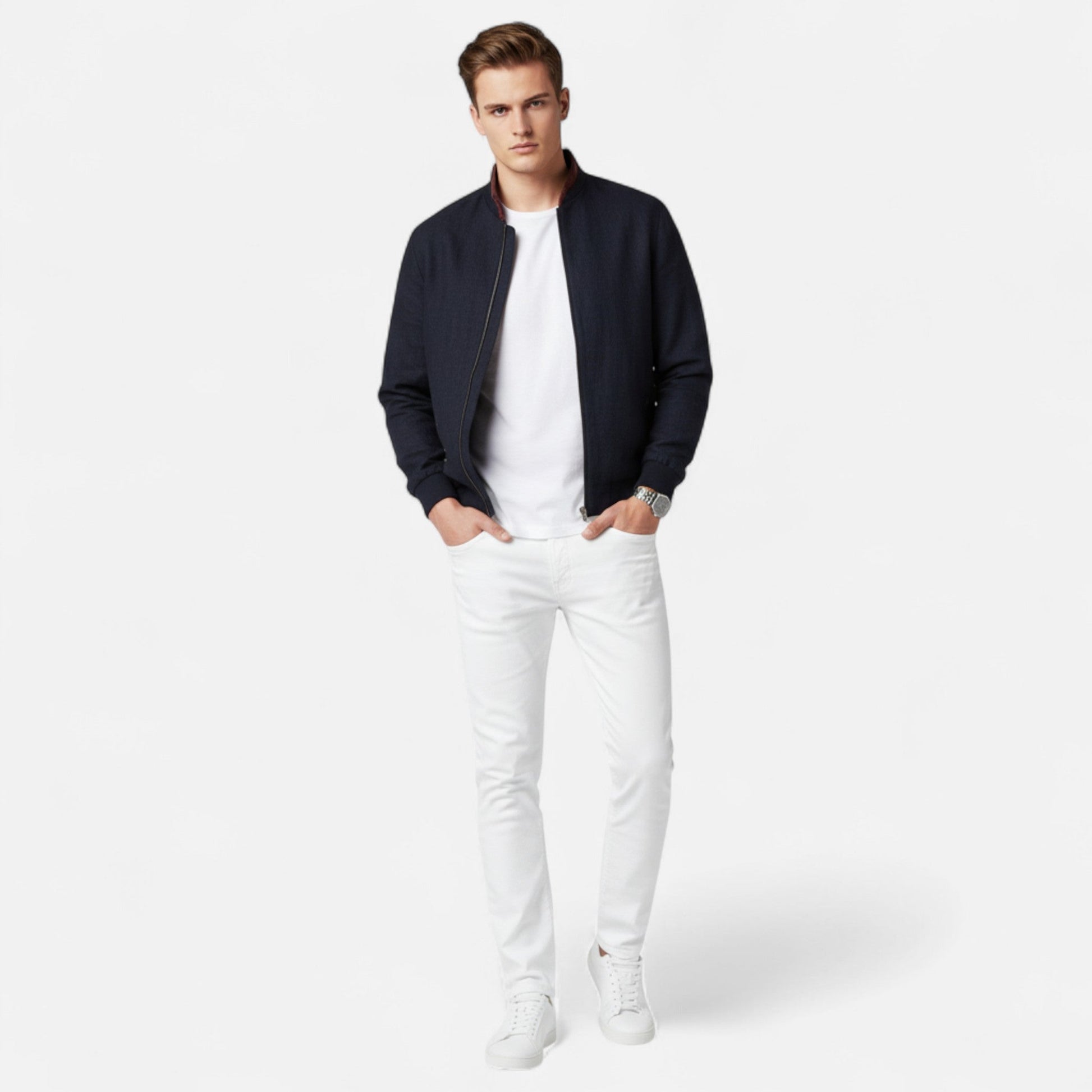 Step into effortless sophistication with a jacket designed to complement your lifestyle. Auvier introduces a stand-collar silhouette with a clean zip closure, offering your wardrobe a balance of refinement and function. Its pure-colour design makes it a versatile layer, perfect for pairing with tailored trousers or casual ensembles.
