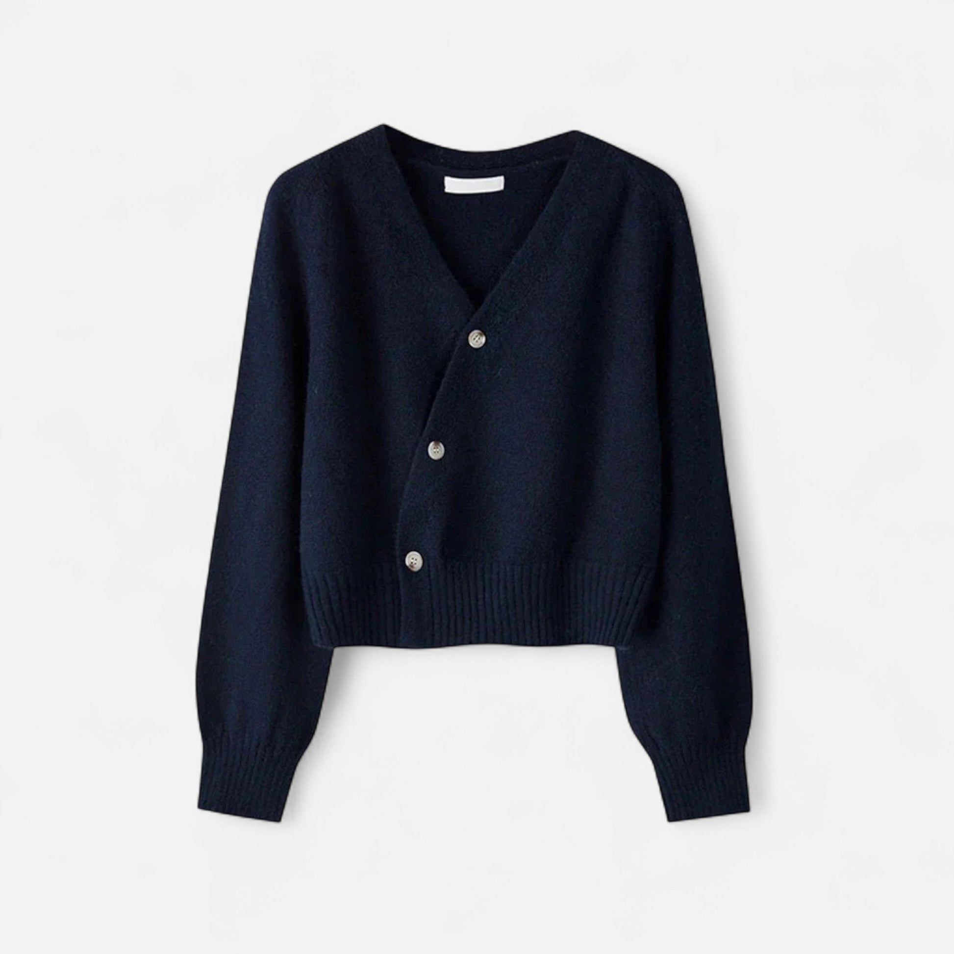 Discover the quiet elegance of Auvier, where heritage-inspired knitwear meets modern refinement. This skew-button cardigan is crafted with a flattering V-neckline and long sleeves, offering a distinctive twist on a timeless design. Ideal for winter layering, it balances sophistication with comfort, ensuring your wardrobe carries an enduring touch of old money charm.