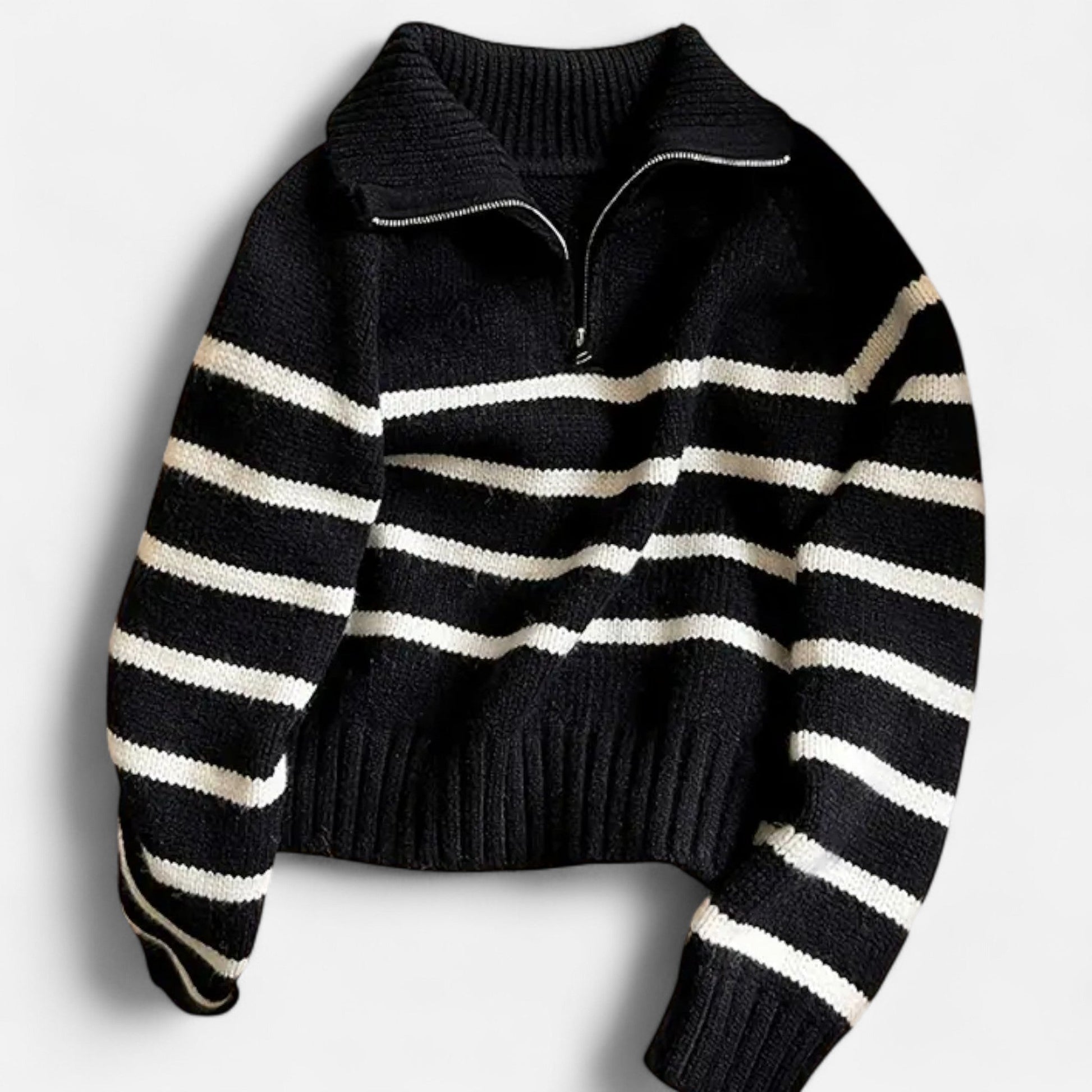Step into timeless sophistication with Auvier, where heritage-inspired knitwear meets contemporary ease. This striped half-zip turtleneck sweater, complete with a contrast collar and relaxed fit, captures the quiet charm of old money style. Designed for both comfort and polish, it offers a versatile layer that transitions seamlessly from casual weekends to elegant winter gatherings.